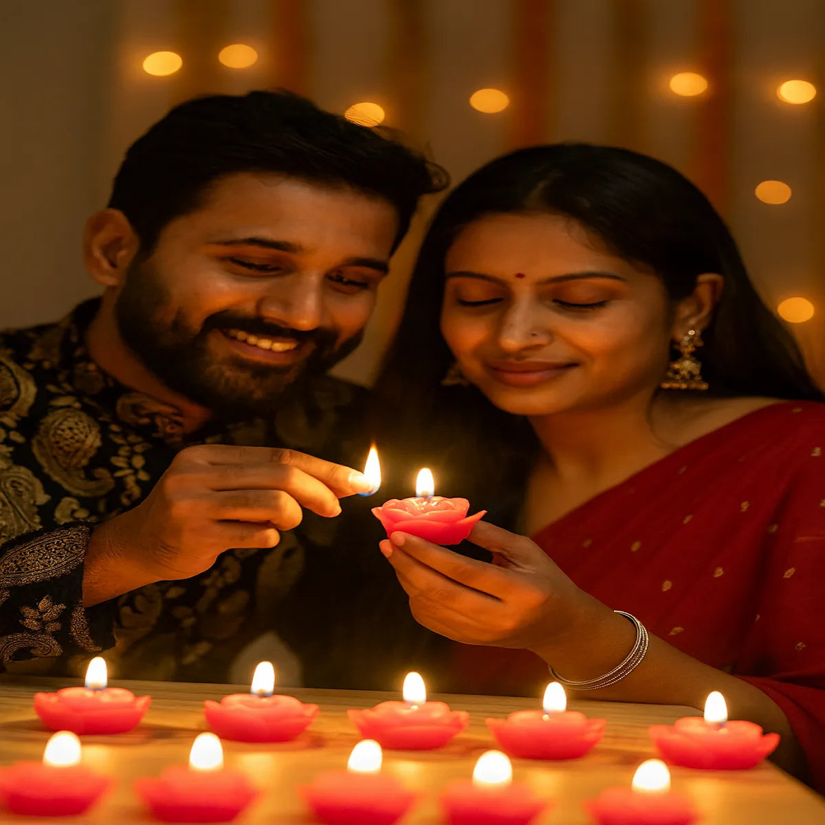 I absolutely love these rose‑scented soy wax candles! The fragrance is gentle yet noticeable, and they burn cleanly without soot. The floating rose and pillar design is so elegant — perfect for dinner decor,diwali. Highly recommended!